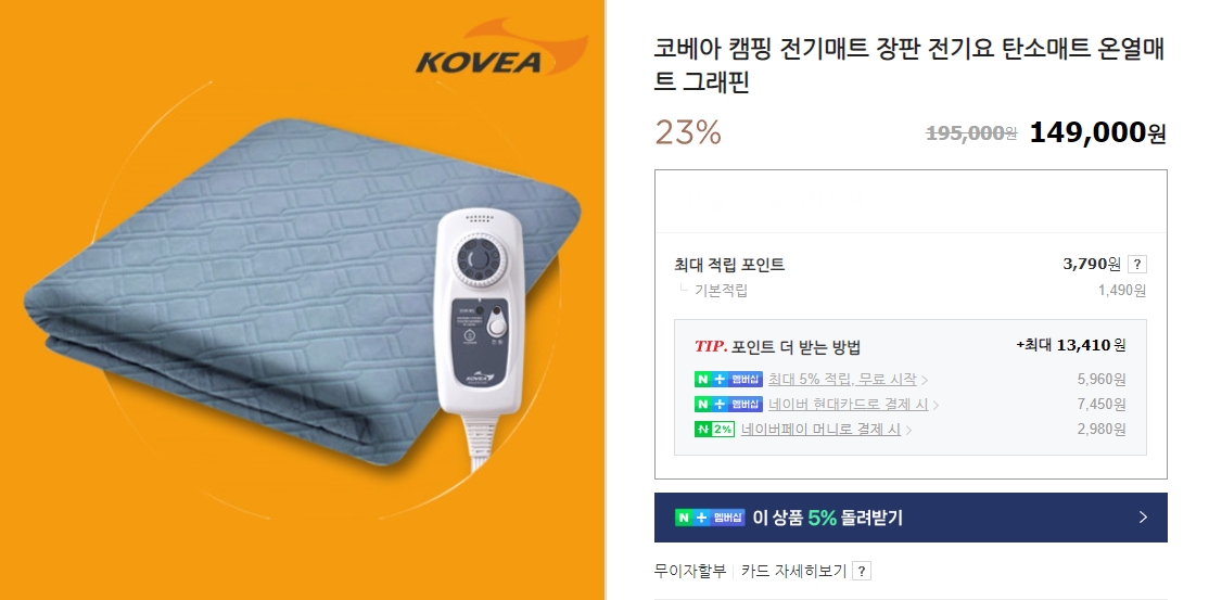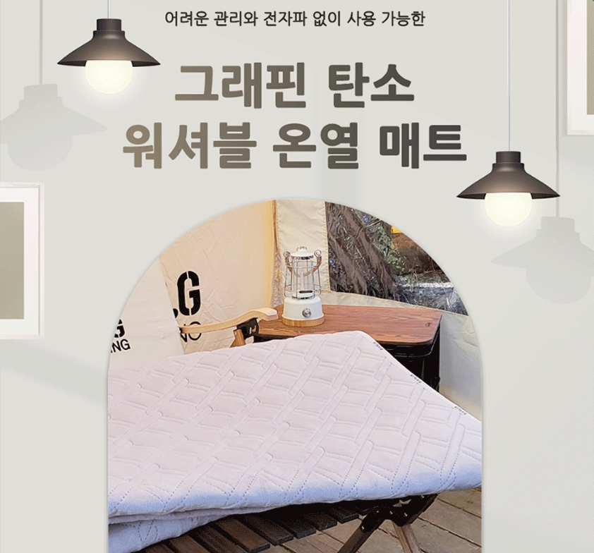 | 90.3% | 그래핀 원단으로 향균, 음이온방출 | 125~210w | 열선과 원단에 모두 그래핀을 사용한 고퀄리티 |